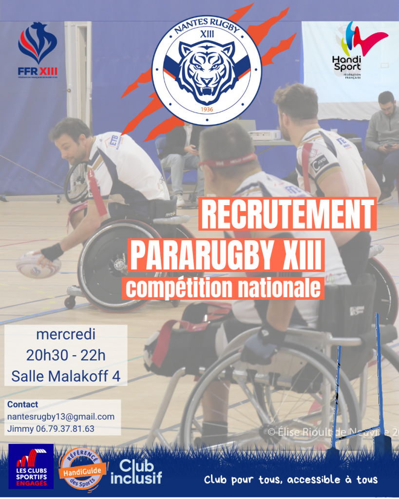 Cette section est en cours de développement dans notre club. Nous  proposons depuis le début de l’année 2023 une séance de XIII Fauteuil 1 fois par semaine le mercredi de 20h30 à 22h00. Pour la saison 2025-2026 l’équipe sera engagé dans le championnat national. Cela implique des déplacements pour les matchs lors de certains week-ends.
